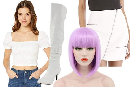 In the opening scene of the episode, we're introduced to the accompanying "Black Mirror" hosted music video featuring Miley Cyrus (aka Ashley O) dancing all in white leather. Everything from the boots to skirt and top, are a crisp white and contrast dramatically with the character's cotton candy themed wig. While we can't provide you with the dance moves, we have the perfect recommendation of products you need to recreate the all-white ensemble to wear to any Halloween party.