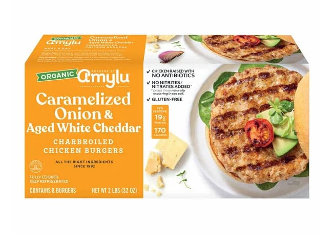 Love the satisfying feeling of eating some kind of burger but worry about the amount of calories you're eating? Lauren recommends picking out a box of the Amylu brand Caramelized Onion & Aged White Cheddar Chicken Burger patties. The flavorful patties have a satisfying savory flavor and contain 19 grams of protein.