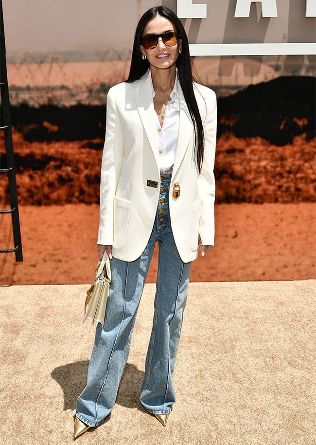 Denim and a blazer might not be the typical red carpet combo, but Demi Moore proved it can be done—and done well.
