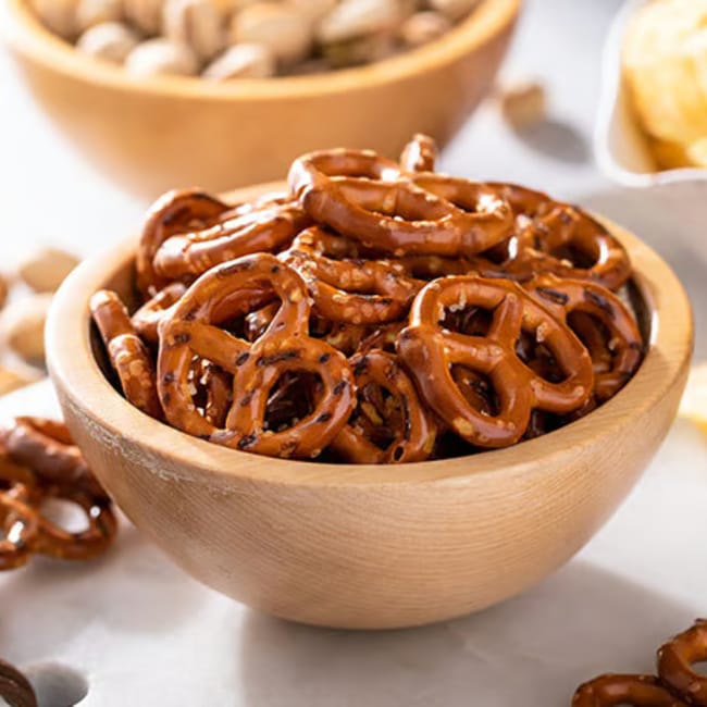 Snacks like pretzels, potato chips, popcorn, and more are all super common late-night snacks. They're accessible and super easy to eat loads of while watching a movie or scrolling on your phone. However, they're all high in carbohydrates and low in protein, making for an unbalanced choice before bedtime.